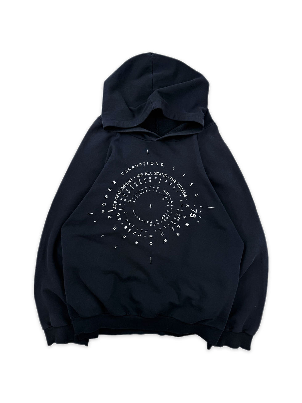 Debuting in the Autumn of 2004, this mesh top comes as one of the collection’s largest canvas’ for Takano’s work. Sporting in the incredibly rare sky blue colour way, the artisan’s nude figures are pictured floating effortlessly on an Alien island, in the foreground of a volcano. Coating both the chest and back, the graphic leaches to the underside, where a series float just before a dormant spaceship . To finish, the print is sculptured atop a mesh, skin-fitting base, tagged as a size large with signs of use on the torso.