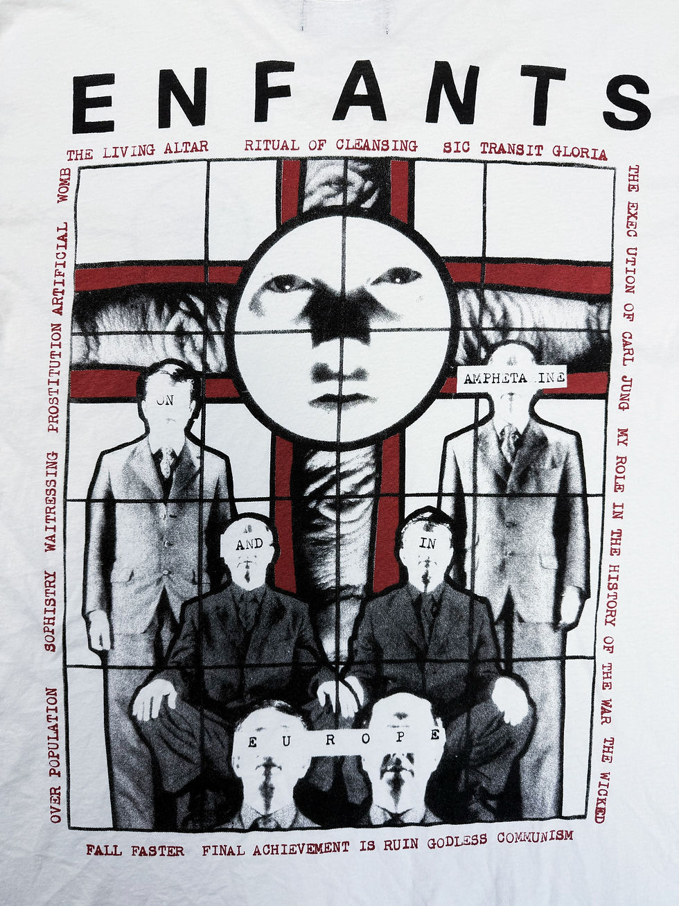 Debuting in the Spring of 2004, this intense tank-top epitomizes Jean Paul Gaultier’s intricate design philosophy. As a skin fitting top, the sporadic, sketchbook tattoo aesthetic drapes down the body to simulate genuine ink. Depicting the Virgen of Guadalupe across the chest, an assortment of floral detailing sits among JPG arc logo lettering, barbed wire and a variety of apex predators. On the underside, Jesus stands with a crown of thorns, accented by a portrait of Leodnardo Da Vinci’s ‘The Last Supper’. In pristine condition throughout, this tank is tagged as a size medium.
