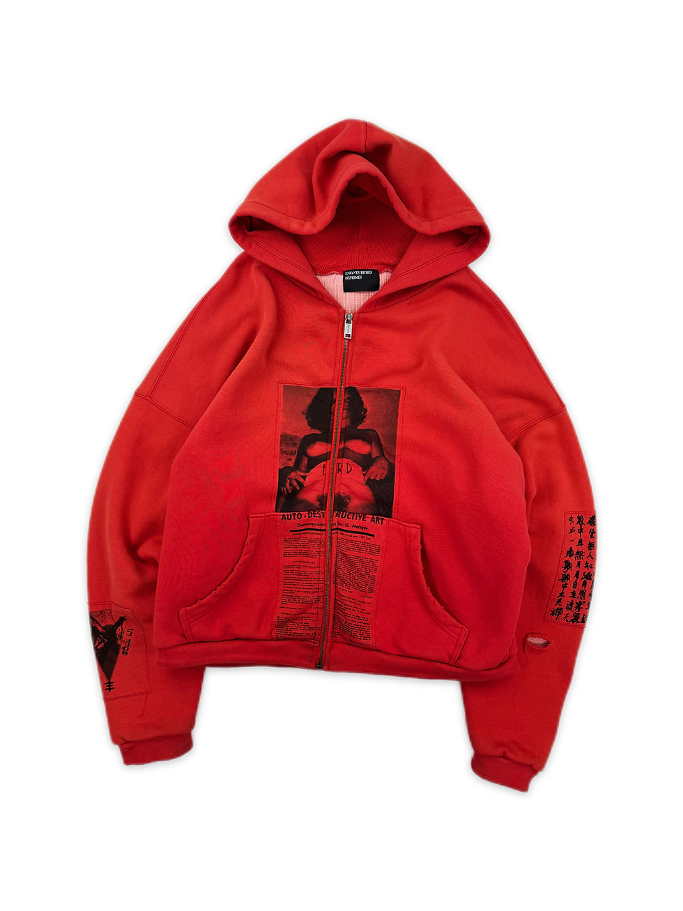 As a standout of the lookbook, this jacket features a vast array of ‘666’ detailing throughout. Drawing influence from the age-old STP Motor Oil logo, Supreme alternates such lettering for a cartoon-like ‘666’ motif, scattered atop the body and either sleeve. Completed with metallic hardware, button snap closures clasp either breast pocket, finalized with an embroidered Supreme logo. Tagged as a size large, in pristine condition throughout.